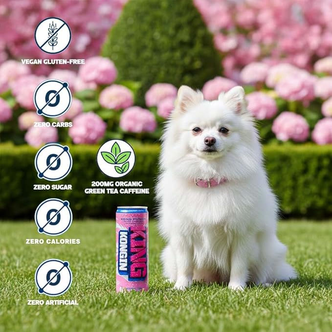 Experience the ultimate energy boost with King Kongin KONG PUNCH Zero: Calorie Energy Drink Sugar-Free & Packed with Organic Caffeine! Elevate your focus and performance with every sip. Each 12 Fl oz can delivers 200 mg of Organic caffeine from green tea, helping you stay energized and alert throughout your day. Whether you're powering through a workout or a busy schedule, this refreshing drink gives you clean, long-lasting energy with zero sugar, zero calories, and no artificial colors. Crafted for those who want more than just energy, KONG PUNCH is enriched with B vitamins, Biotin, Pantothenic Acid, and antioxidants, supporting your daily nutrient intake. Enjoy the delicious fusion of KONG PONCH flavors in a vegan, gluten-free formula designed to meet diverse dietary needs. Unleash Your Inner Energy with King Kongin!